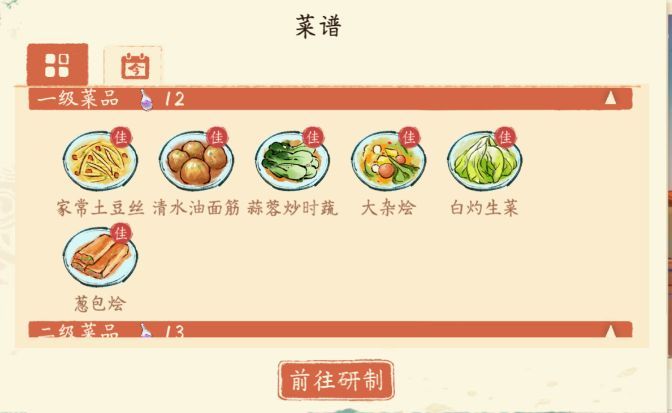 今天开了食庄,大大满足了在下做菜的小爱好,凭借我的不懈努力,轻松拿下第一层的食谱和最佳搭配!现在分享给大家!! 菜品一共是6样: 家常土豆丝(土豆+土豆+蒜+大葱) 清水油面筋(面粉+生菜+蒜+大葱) 蒜蓉炒时蔬(生菜+生菜+蒜+大葱) 大杂烩(土豆+生菜+大蒜+大葱) 白灼生菜(生菜+生菜+生菜+大葱) 葱包烩(面粉+面粉+大葱+大葱)#攻略#新手攻略