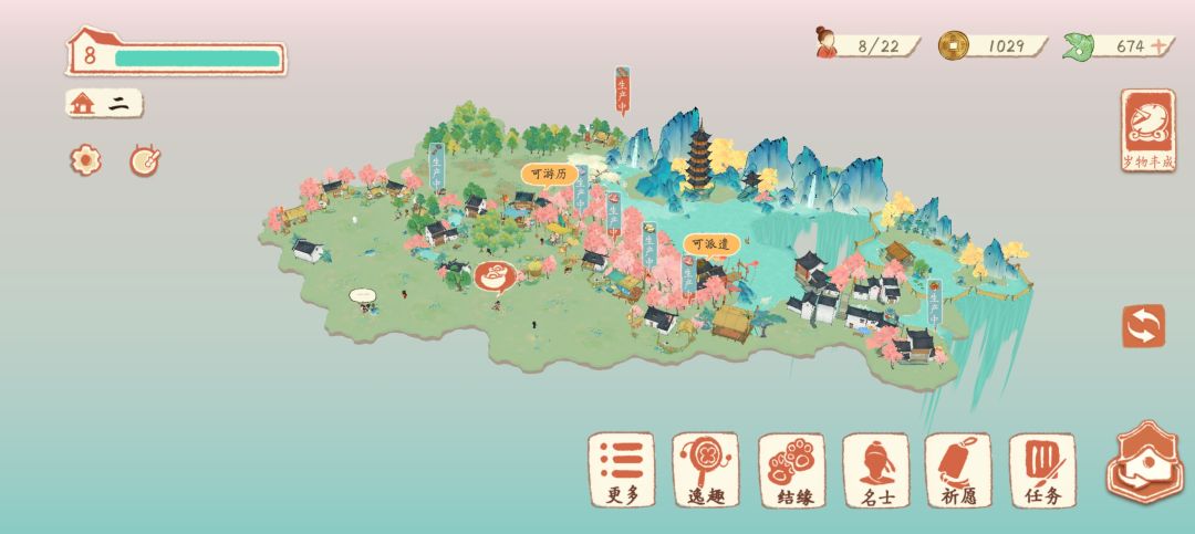 江南17阶,繁荣度6级; 巴蜀4阶,繁荣度2级; 先是游戏大概展示,然后是地图区域展示,最后是江南和巴蜀地图全景展示(目前阶段)。 游戏总结建议在地图全景布置后面。 参加了这次内测,然后说一下吧。可能是我玩的这类游戏多,然后要求有点高有点多,但是真的在认真建议和评价了。好也是真的好,但也有需要改进的,毕竟优秀没有上限嘛。 优点: 整体画风清新淡雅,很喜欢,人物描绘和介绍面板也很好看,地图拼接也挺好