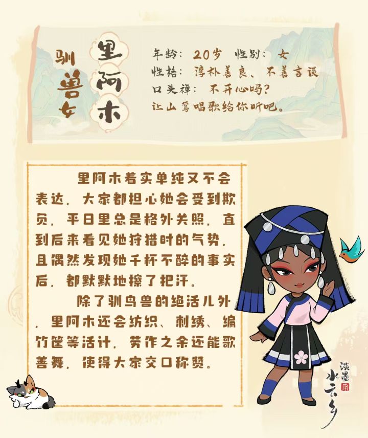 仙君们好久不见呀~最近乡里的的风铃花开得正盛,空气里都飘着甜甜的花香!不知道大家有没有趁着好天气,去山间采花,或是坐在溪水边发发呆呀?今天白泽要带着大家认识几位新居民↑温柔手作娘——里阿木熊崽饲养员——阿竹氛围掌控者——银花下期大家想看关于什么方向的居民呢?最近天气多变,仙君们要注意增减衣物,照顾好自己呀!要像银花叮嘱的那样:好好吃饭,戴上阿木编的竹叶香囊,等一个时机,我们一起去偷看