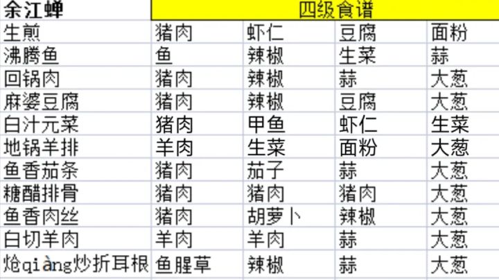 一、食谱配方每道菜都有最佳配方,最佳配方研制成功后,每个菜品在营业时许愿砂收益提升20%所以我提供的表格都是最佳配方~二、饭庄每天饭庄会在研制成功的菜品中选取[今日主营]菜品,任由顾客从中点选,并且会收到1位顾客的定制菜品,完成定制菜品可以获得玉佩每次营业时,仅可放弃1位客人订单,放弃订单会使营业总时间减少30秒,谨慎选择哦~佐料份数关键词一份:少、少许
