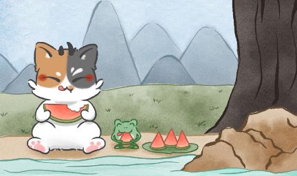今日小暑,白泽在群里看到有不少仙君在“晒西瓜”于是乎,它也往溪边树荫一瘫,抱着西瓜嚼嚼嚼,爪子都变得黏黏的,旁边的小青蛙鼓着腮帮子道:“呱?这瓜保熟吗!”。树影晃呀晃,溪水偷瞄它们的吃相,远山的蝉鸣都都成了它俩吃瓜的白噪音。今日互动西瓜虽好,莫要贪多,白泽正在拉肚子中…话说各位仙君西瓜吃多了会拉肚子吗~