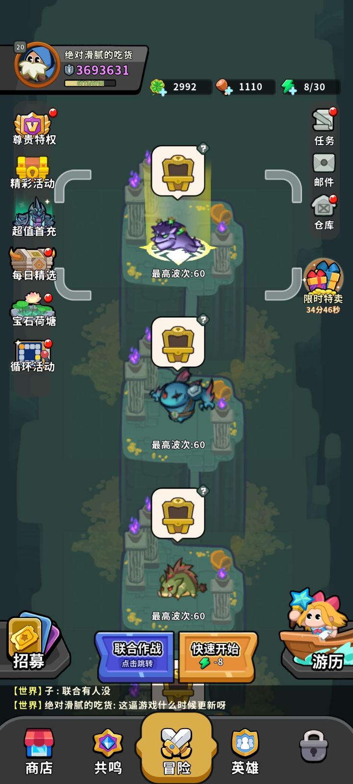 养成类游戏前期都是很难度过的,需要大佬带通关,获取奖励一步一步成长起来。下面我推荐一下辅助阵容及玩法(以下仅为个人观点)开局卡80个小怪后会获得200银币利用这200银币买出“巨魔猎头者”因为他的技能每10秒可以获得银币,前期可以利用这一点存钱。“树精”的技能是每次普攻6%的几率获得5个银币。前期银币充足后,通过合成普通卡获得史诗卡卖出,祈愿币就不会少,因为是辅助不需要我们