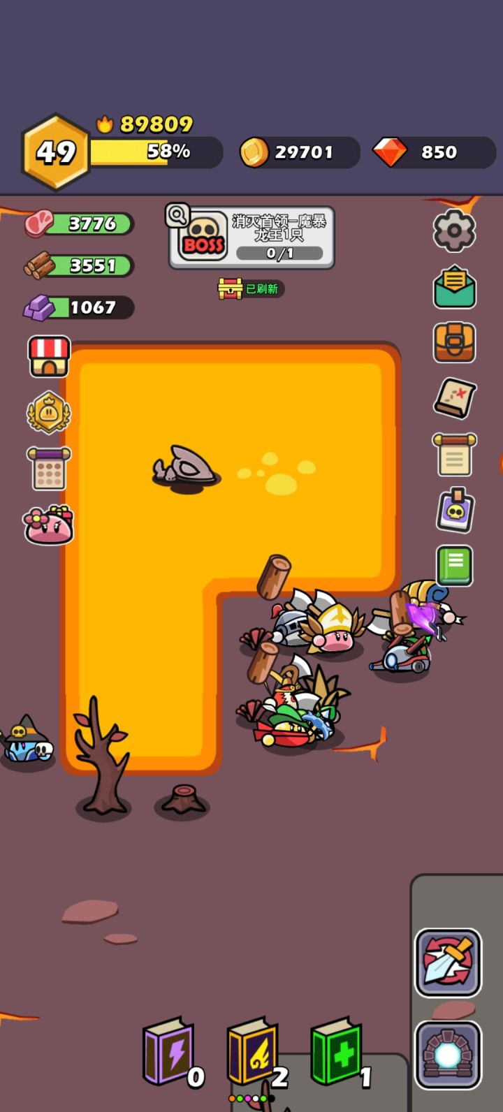 升级英雄,白色就不用升级了,没那么多资源,其他的看谁等级高升,等级低的有资源再升级。到20级会缺各种资源,肝起来,继续过图,40级图基本难走下去了,缺资源,缺卡,有能力的就继续肝,没有的就挂机打资源,选择最容易挂机的地方,有怪,有矿就行,不用在意地点。重点扫荡功能,打BOSS最后一点点血的时候点扫荡,有个150%奖励,可以B