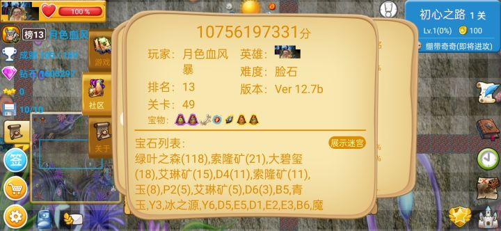 注:不适用于12.x版本本篇攻略适用于10.2版本,浏览时请注意。英雄选择:猛犸通关所需宝石:神晶,晨星,青玉宝物选择:投降,稻草人之类的苟活类宝物即可()注:关于基础的游戏机制,宝物效果等内容在置顶贴中有描述推荐迷宫:开局:在神秘商店购买4个y1高级合成y3开局在游戏前期(1-10波)的时候可以适量进行“买胡”操作,即在场上有两个所需宝石(如图中的g1,q1),在神秘商店购买e1