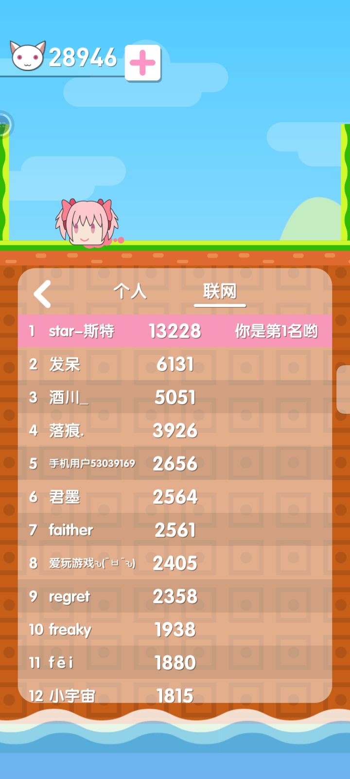 作者大大!!!非常好玩但有几点需要改进:第一次打的时候,建议简单说明一下云可以二段跳 卡了我有点久。。。 可以弄个限时模式,在那个时间段里跳得多少分,再加个限时排行榜,这样估计会吸引人,且好玩 (听说你是听劝作者)很建议大家入坑! 作者尽量改一下噢