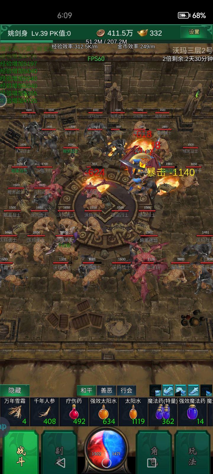 打了2个小时 双倍走起,爆了个寂寞。。。前后对比图 好像没区别