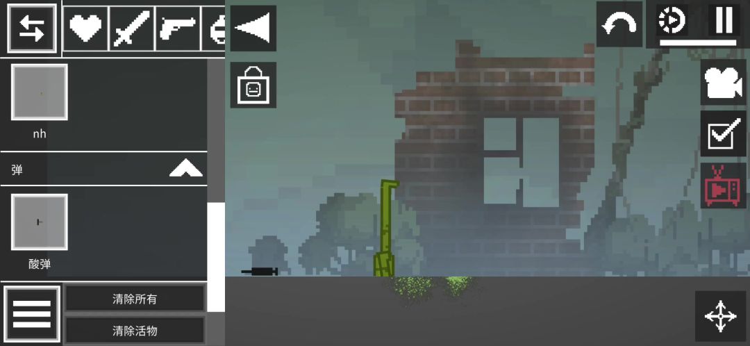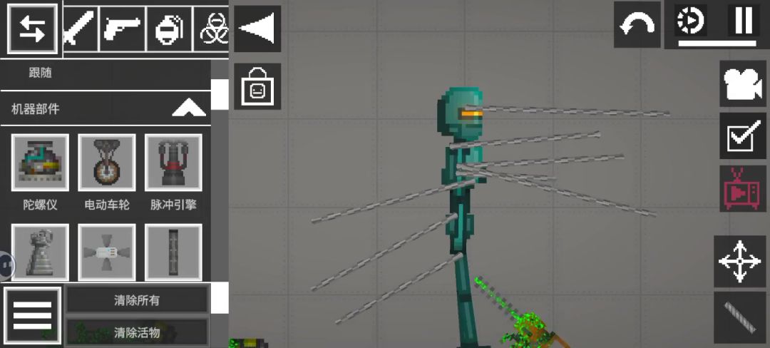 我玩甜瓜游乐场的时候啊我就是想测试一下甜瓜有没有自我意识,想把他的下半身锯下来然后呢当着他的面给伤害但是呢失败了,所以呢我就把他腿锯下来了他也没了,直接成骷髅我给他一个复活药水结果呢他直接原地升天
