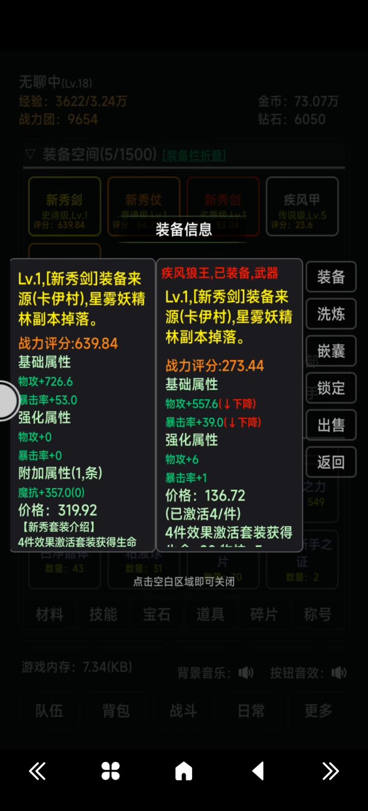 【更新日志】1.181.正式服开启,持续更新。2.优化战斗逻辑3.修复离线3.1:离线单怪物改为章节关卡最高难度4.修复3星扫荡不出材料装备技能等。5.新增祈福系统(属性都在战斗生效)6.新增称号系统(部分称号可在无尽塔里程碑解锁)7.新增英灵佩戴称号后替换星级显示文本8.优化调整天赋英灵体系收益加成9.增强力量、敏捷体系魔法收益10.强化系数收益增加穿透等。11.星级新增