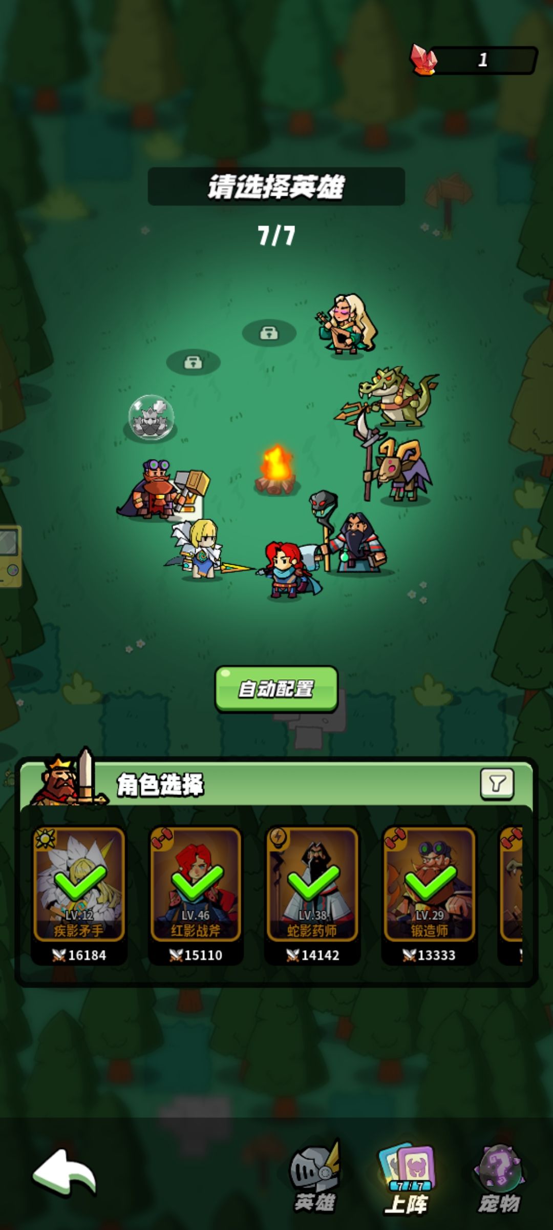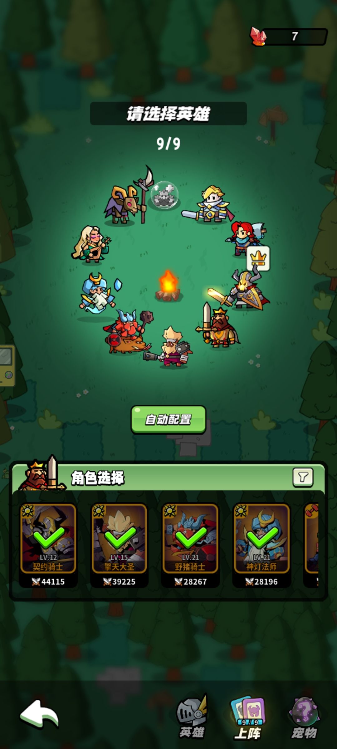 每次会有不同类型技能加成,可以选择相应英雄。