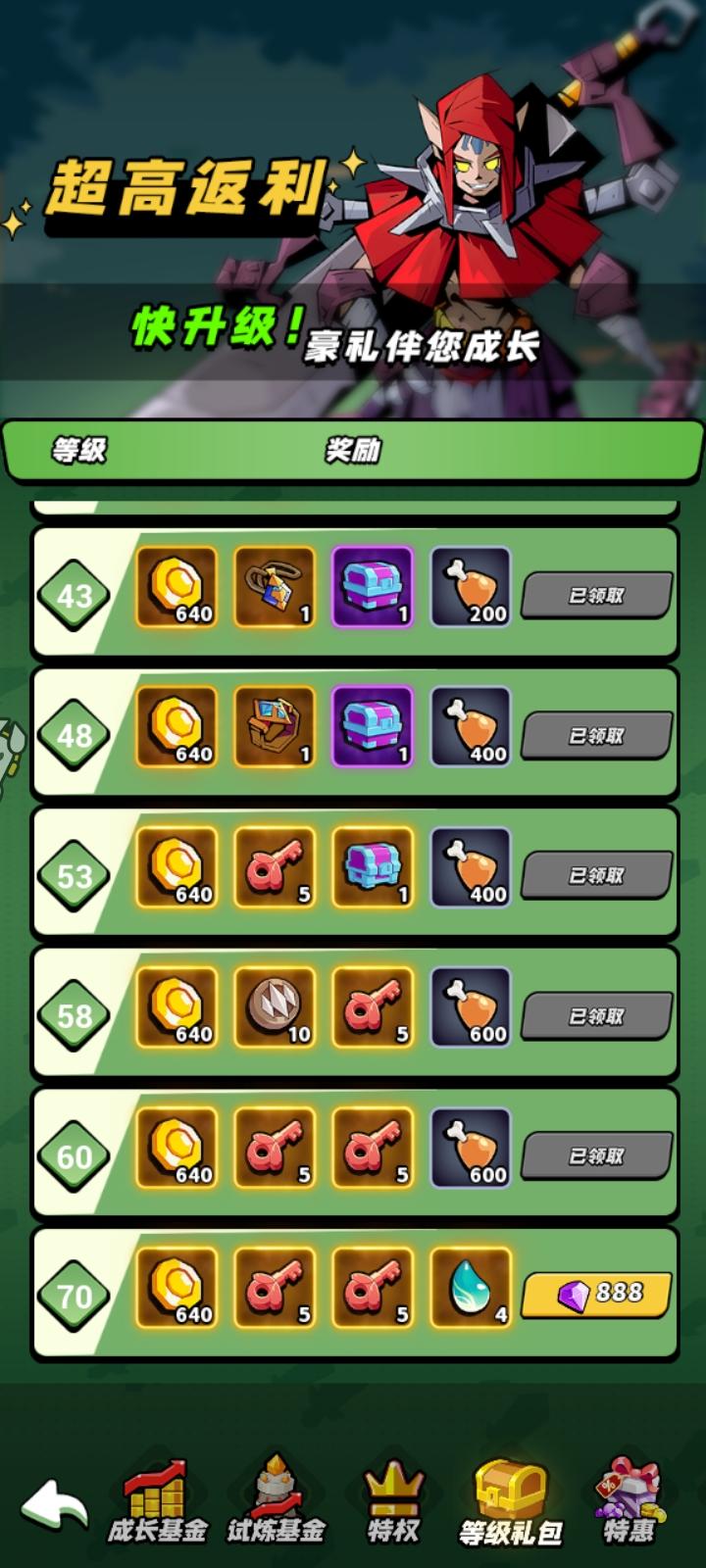 等级打卡活动参与方式✦: 各位勇者达到20、30、50、70级后 在tap社区发帖打卡需带有文字以及[相关游戏截图] (可以在这四个截图类型:boss场景、装备、各种副本、宠物系统选其一进行分享,且每个等级不可重复使用相同类型的截图参与分享) 参与后将发帖当天链接、游戏账号、游戏ID、相关等级截图发给福利官; 即可领取: 20级:钻石*588+肉*588 30级:钻石*588+金币*