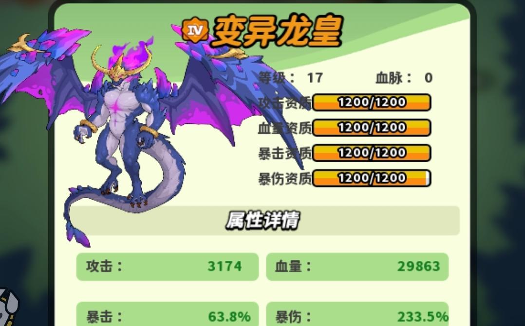 上图是宠物小毕业状态,+8蝎子或者紫食人花当主宠(简称邪修),主宠资质条件:只需暴击和暴伤满资质。变异宠物难搞,有变异龙的话,可以代替蜂皇或者火女。为什么要邪修?橙宠主宠的话,进阶+2之前,只能享受3个被动+8蝎子或者紫食人花,可以享受6个被动,小成本大提升。宠物是一个漫长的过程。开局有宠物活动,需要抓宠物完成任务,由于前期没有开通宠物岛全部层数,建议抓第二层的花,为+8紫食人花做准备。任