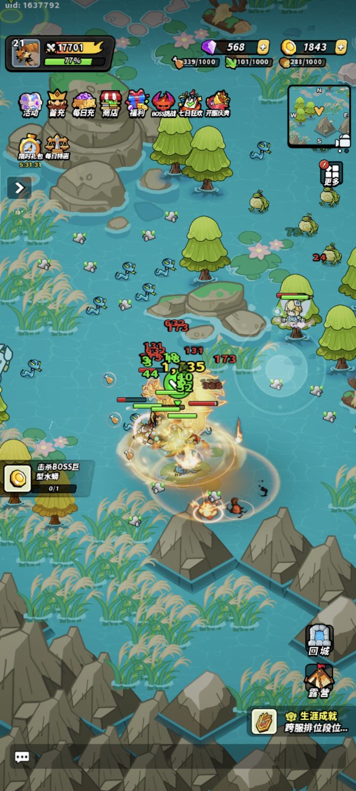 ### 新手快速升级与资源获取 - 开局升级:进入游戏后,找一个人多的地方挂机,共享经验,升级速度极快。 - 资源采集:前期肉和矿石是关键。肉可以通过挂机打怪获取,矿石推荐去村庄的8矿地点刷取。 - 露营机制:露营能吸引更大范围的怪物,提升挂机效率。每天有1小时免费时间,开启特权可获得双倍收益和时间。 ### 阵容搭配建议 - 前期核心:前期阵容以“奶”为主,保证续航。推荐使用 神愈圣王、治愈乐章