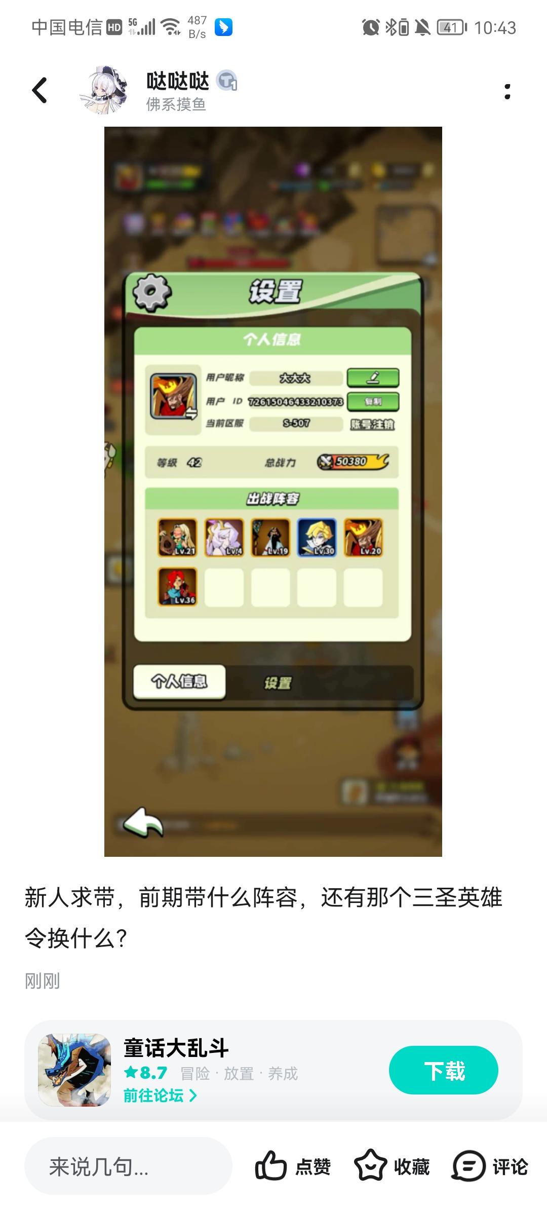 Id:72576563526238209 ✦等级打卡活动参与方式✦: 各位勇者达到20、30、50、70级后 在tap社区发帖打卡需带有文字以及[相关游戏截图] (可以在这四个截图类型:boss场景、装备、各种副本、宠物系统选其一进行分享,且每个等级不可重复使用相同类型的截图参与分享) 参与后将发帖当天链接、游戏账号、游戏ID、相关等级截图发给福利官; 即可领取: 20级:钻石*58