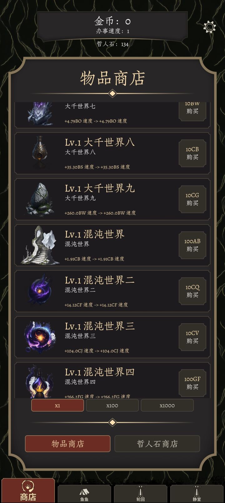 2.一些操作性上的问题:比如我选择100一次的升级,如果我点击我没有买过的东西,我需要先切换到1x买了之后才可以100x,这操作感有点不适。