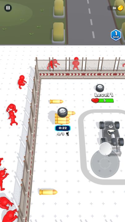 Collect parts and bullets to build the car, eliminate enemies to reach the finish line, and win the game!