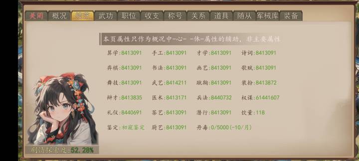 鱼玄机剧情:前提700才学(1.入学读书,2.入云阁听曲,选最便宜的,不是花不起,而且更追求性价比3.晚上夜读) 400诗词(这个我一般儿子三岁以后交互提前就刷好,花50两,不过也可以宴请别人,触发诗词加也很快) 200潜行(清徽派练习潜行,几次就够了)(建议你们数值够了再去街道触发)具体流程:去书斋,叨扰一番,去,陪她离开,相信侍女,我来对付他,留下暗示(几个月后鱼玄机和丫鬟就是你的了,可以选择当妻子还是红颜知己)必须这个鱼玄机无了才能刷下一个鱼玄机哦