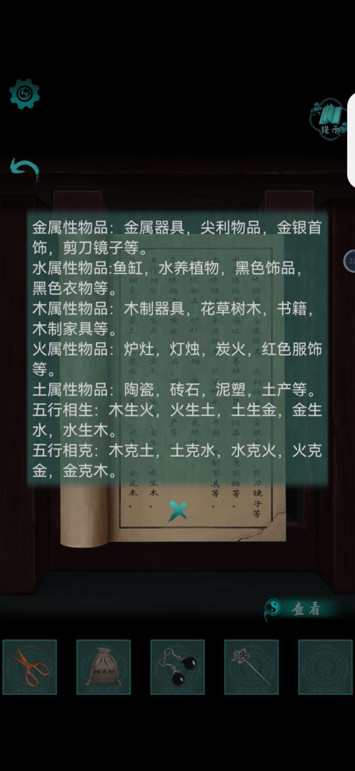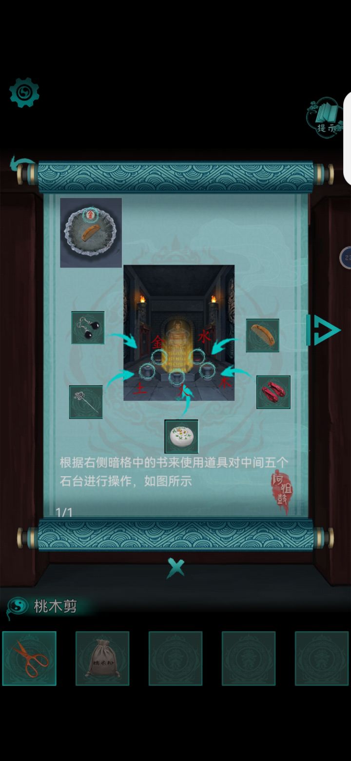 继续更新第四章,开始连个剧情都没有了么,虽然米雪是有吐槽剧情啦,但是,但是,如果结局还能看就不继续吐槽了,还是放个剧情吧QAQ,开局就有线索查看一下左边地上的垫子,点一下移开看到刻字顺卯、顺未、逆丑、逆午、顺戌,先记下来后面肯定能用到的。查看一下左上角的钟表形状,那么就先顺时针到卯,然后顺时针到未,逆时针到丑,逆时针到午,顺时针到戌,轻轻松松完成后暗格打开拿到一卷纸卷,查看一下纸卷很显然这是个龙