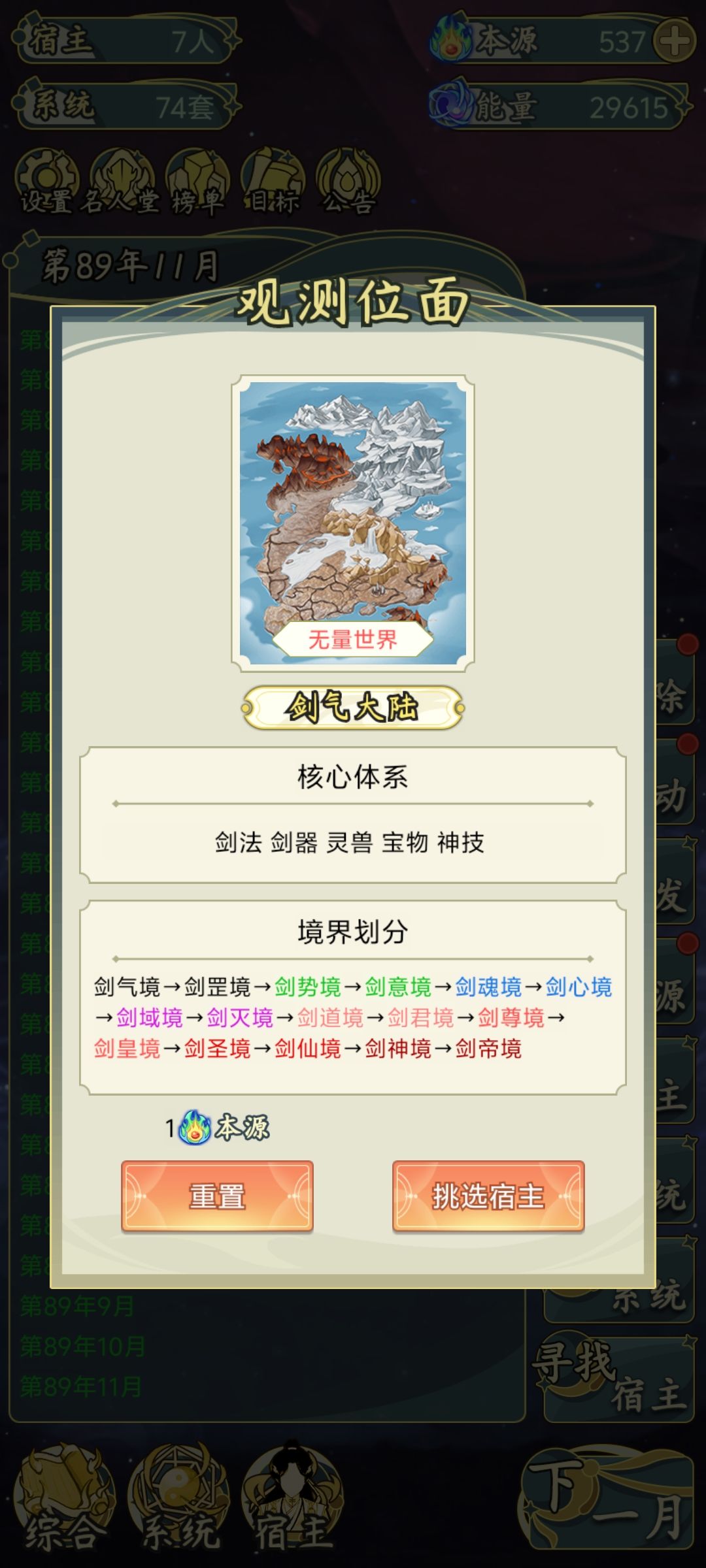 需要注意右上角的 大机缘(用来升级宿主系统数量,一个宿主上线绑定三个系统) 一 系统: 系统等级:白色<蓝色<紫色<橙色<红色 (宿主达到进名人堂临界点一定要解绑系统!)(宿主达到进名人堂临界点一定要解绑系统!)(宿主达到进名人堂临界点一定要解绑系统!) 名人堂进入标准(宿主战力): 无量世界:10亿 大世界:5000万 时刻注意榜单和综合按钮以免不必要的损失! 其他不过多介绍,喜欢探索可以自己体