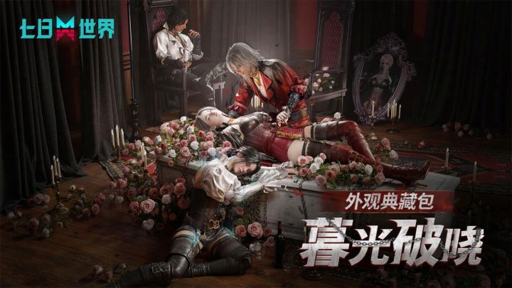 据说在血月笼罩的深夜,郊外的废弃古堡时而传来低吟,时而闪烁诡异的灯火,人们都说,那是血族的巢穴——全新时装外观、武器皮肤、家具包9月4日上架商城,诚邀你华服共赴这场“血族盛宴”! 典藏·暮光破晓主题包 9月4日-10月9日 限时上架月光在银发间流淌,缎面与皮革在硝烟中低语。他胸前的十字倒悬成时针,她腰间的枯骨摇晃着上个纪元的禁忌。绸缎包裹的枪管正微微发烫,暗夜颂诗,血族苏醒,与其在黄昏中腐朽