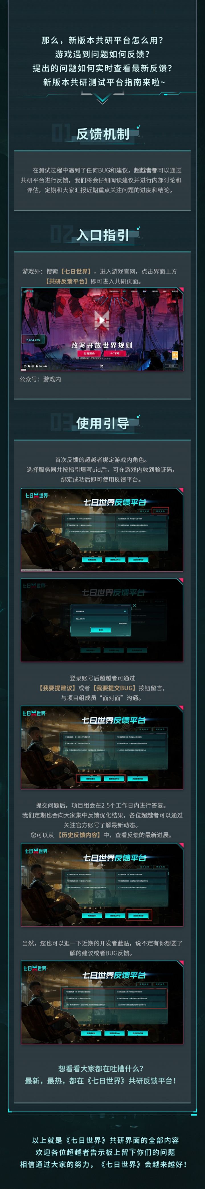 升级版共研反馈平台现已开启问题、建议、bug反馈,一键提交,后台跟踪只需要2~3个工作日,即可获得策划反馈!共研反馈页面指路:https://qrsj.163.com/grfkpt/快捷!便利!高效!小七倾情推荐并附上使用指南,点击下方长图快速上手~#七日世界