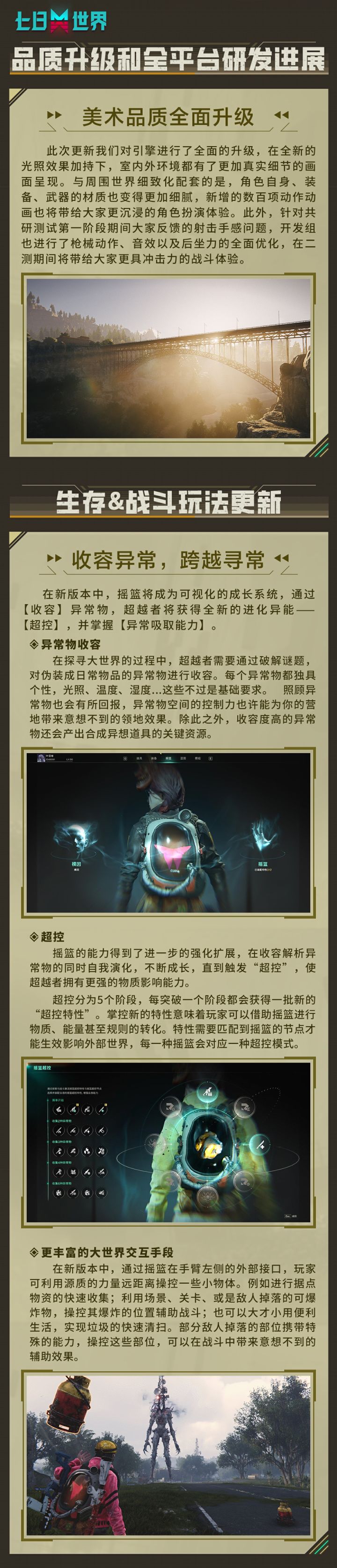 好消息!好消息! 你在追的bug修复啦! 你提的建议它也优化啦! 各位超越者大家好呀! 先锋服测试有段时间了,共研二测也即将开启, 小七最近一直在收集大家在评论区和社群的反馈,比如优化射击手感,画面太黑了“打个灯”等等… 今天!第一期《37探班日记》终于来咯! 在测试开启前,满足一下好奇心… 一起前瞻一下开发组即将带来怎样的美术效果优化提升吧!#七日世界
