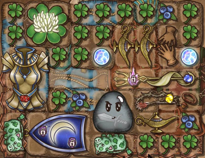 后期 右下角是速度包,贴贴女士多吃速度吃⭐,两只小鸟吹水晶,顺便吹女士,三个女士两个水晶就很强了。这么吹法三个女士够了别多,其他优先抓水晶。要是怕刷不出,带个稀有卡。 前期 扫把铲子输出(加速包),多抓格子,打折物品都可以过度,要有个布甲合血甲。其他抓帽子和石化药。 中期 扫把升魔杖,后面升不愈(不愈不用特意吃加速,有地方放就行) 有抱抱先生了,立刻找🈵水晶两个,贴贴女士两个成型。可以找两只鸟吹水
