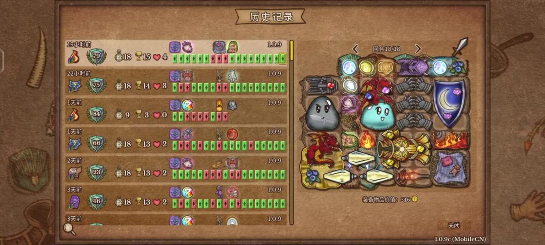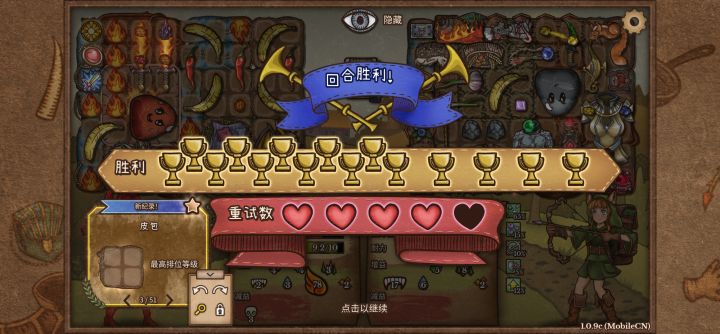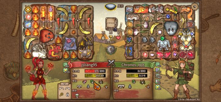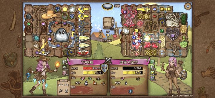 这把打的是锤匕流,这个流派特别适合新手,前期输出看锤子,后面十回合转职后合成幸运猪给锤子加眩晕概率,然后靠匕首双重触发打伤害,蓝我是靠项圈给蓝,我这里是幽灵匕首也可以换成吸血匕首,就不需要考虑蓝,比较怕盾牌和石头盔,我补了3瓶药和兔子耐力依旧不太够,所以缺耐力也是缺点