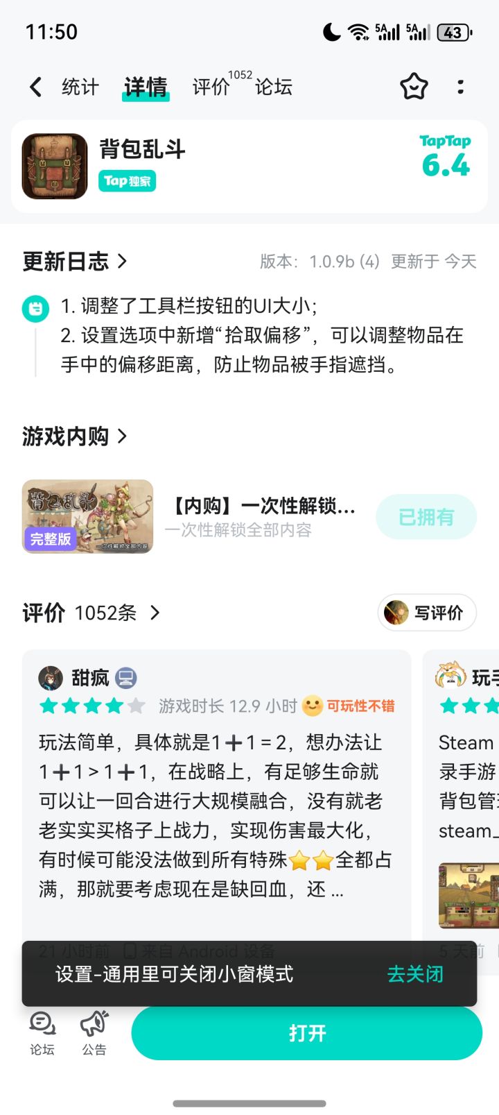 各位久等的整理大师、策略鬼才们:这里是IndieArk团队!经过漫长的筹备,《背包乱斗》手游版,今天正式全平台上线! 📢 重点来了!发售信息 & 超强福利 游戏采用“免费下载 + 内购解锁”模式。✅ 免费畅玩:无需付费,直接使用【游侠】与【收割者】两大职业体验完整游戏内容!没有关卡锁,想玩多久玩多久。🔒 解锁全职:一次性买断解锁剩余4大职业,开启全职业制霸之路。💰 首发特惠价格 & 联