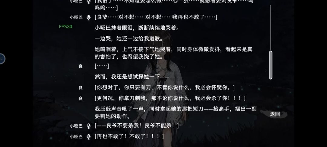 很好奇这款明末千里行凭什么能众筹五十万来做自己的游戏。抱着这样的疑问下载了游戏。 在明末乱世,玩家扮演的角色是一名盗匪,负责护送四名女孩从华州城到洛阳城。在这个过程中,玩家将遇到各种挑战和困境,需要做出选择来影响故事的发展和结局。 从美工和配音来说,真的是无可挑剔。可是这款游戏发生的太多事让我感觉压抑。从时代背景到人物刻画,加上紧凑的剧情,让我很难不代入进去,代入那个明朝末年,天下动荡,人心丧乱的