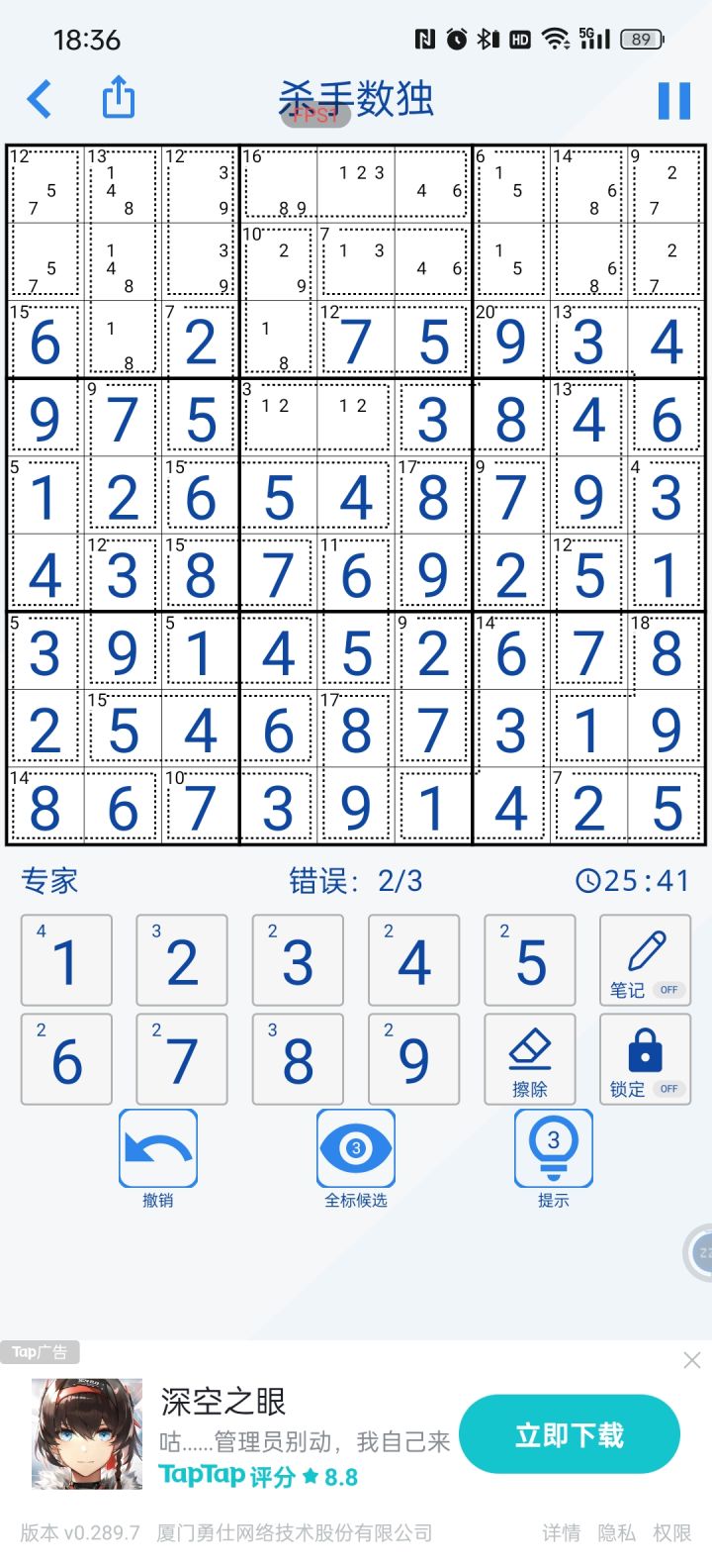 家人们有做到一半又发现题出错了,是我不了解规则吗,你们看一下3是不是有问题#数独