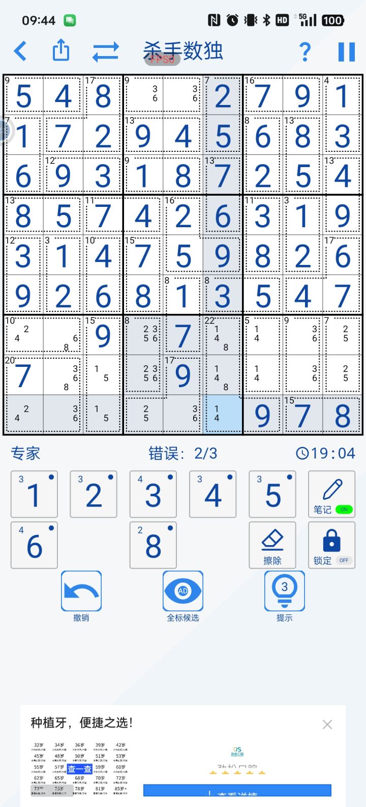 推到图三这里的时候卡了很久点了提示,告诉我(9.9)必定是3,我推了半天没看出来为什么是三,最后推出(1.4)不能是8,才把后面的推出来。提示不是说没有用,只能说不能用,给的位置我觉得凭借当时的情况不可能一次性推出来,完全是根据答案随机给一个位置答案是吧