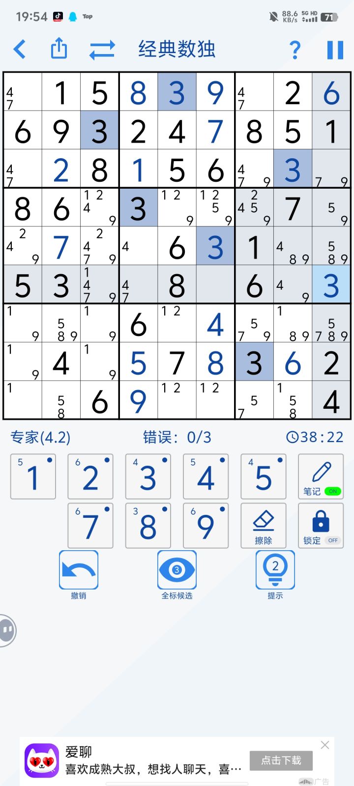 家人们有做到一半又发现题出错了,是我不了解规则吗,你们看一下3是不是有问题#数独