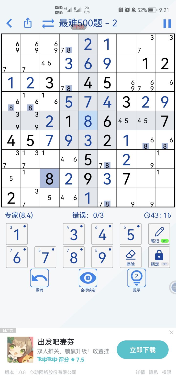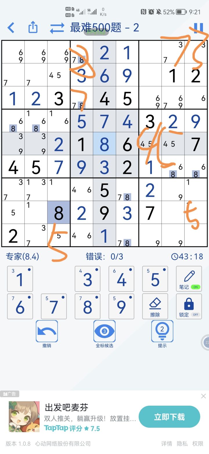 家人们有做到一半又发现题出错了,是我不了解规则吗,你们看一下3是不是有问题#数独