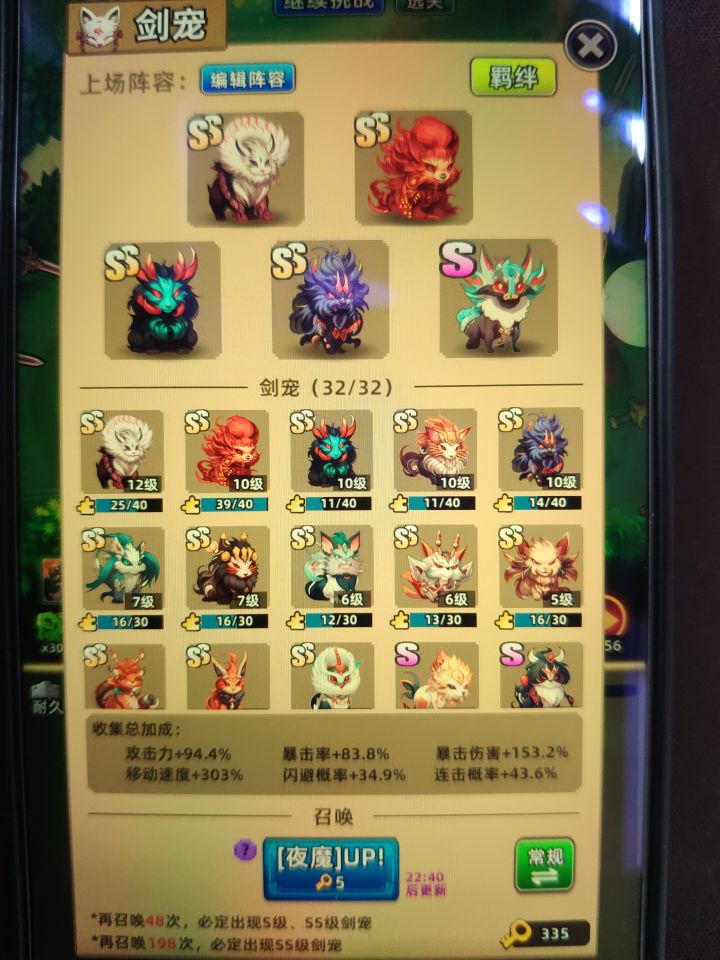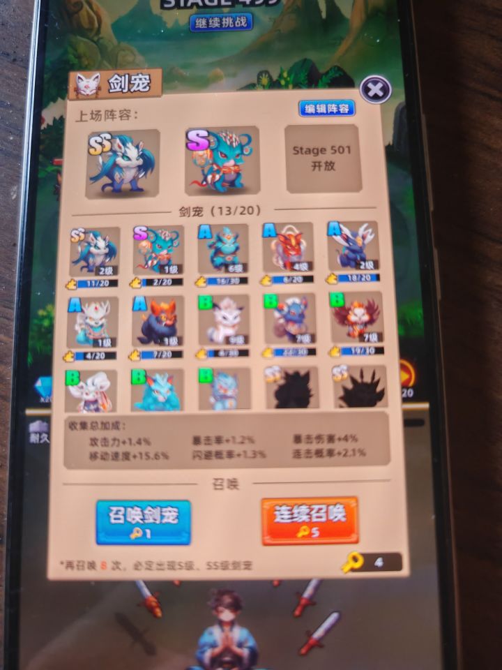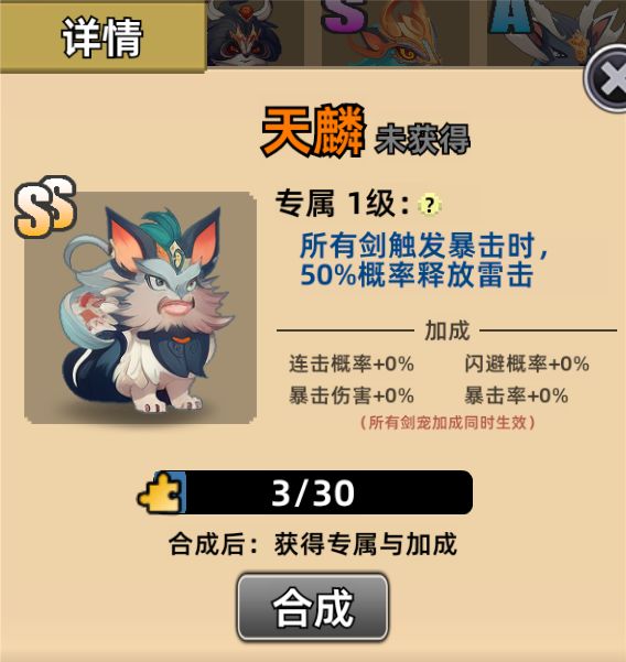玩了五六天,发现这个灵宠是真的重要。先讲一下最高级的SS宠,风雷主要是秒小怪刷金币,火主要打首领好用容易突破极限。选风宠的话剑灵属性只要一个70%范围的S属性就好,然后其他的加风伤和闪避。选雷宠—剑灵属性选攻击目标+2的S属性两个就够了,其他的选暴击率和雷伤。选火宠—剑灵属性选概率3倍攻击最好满,其他的火伤和连击。剑的附魔也是根据以上来选择。S级宠,前期金币宠物优先至少800层以上性价比高很多。
