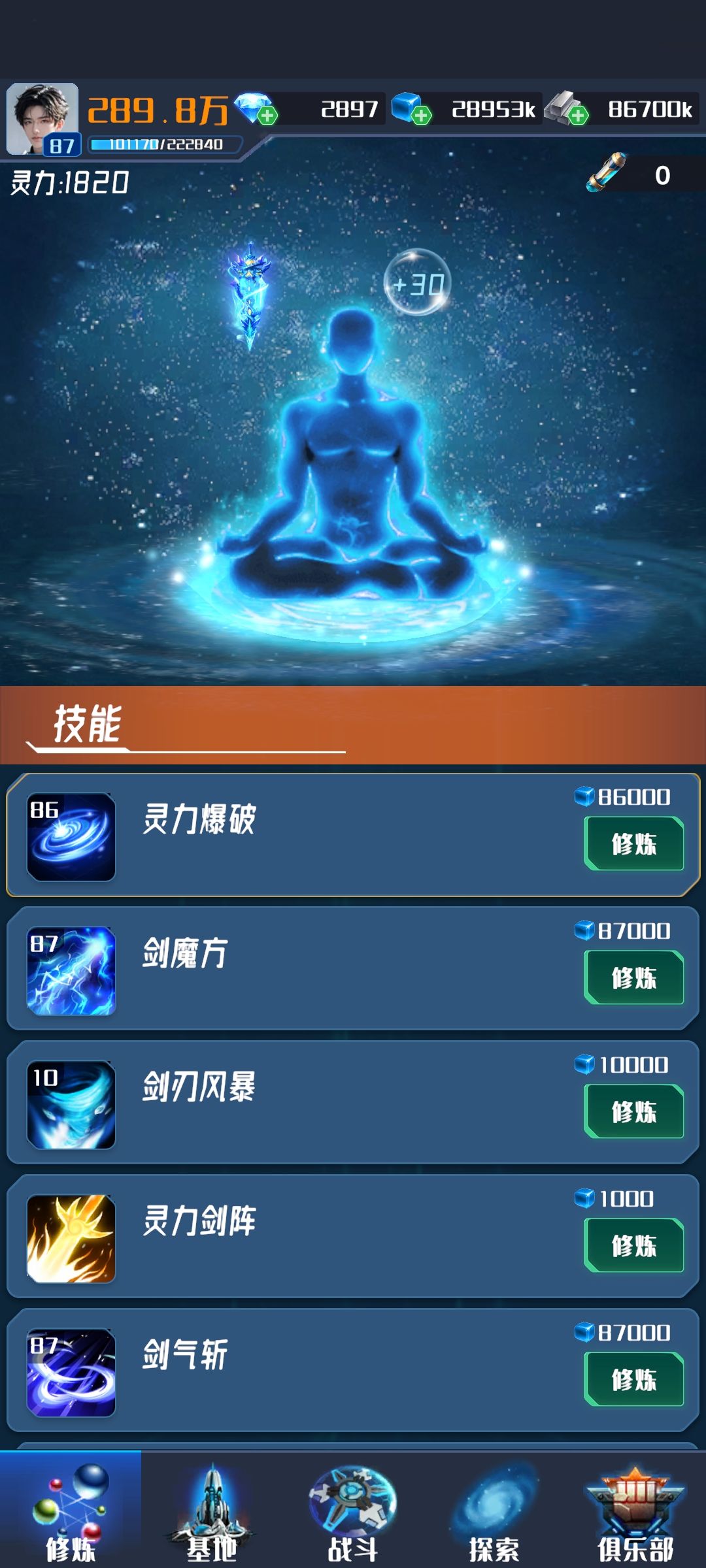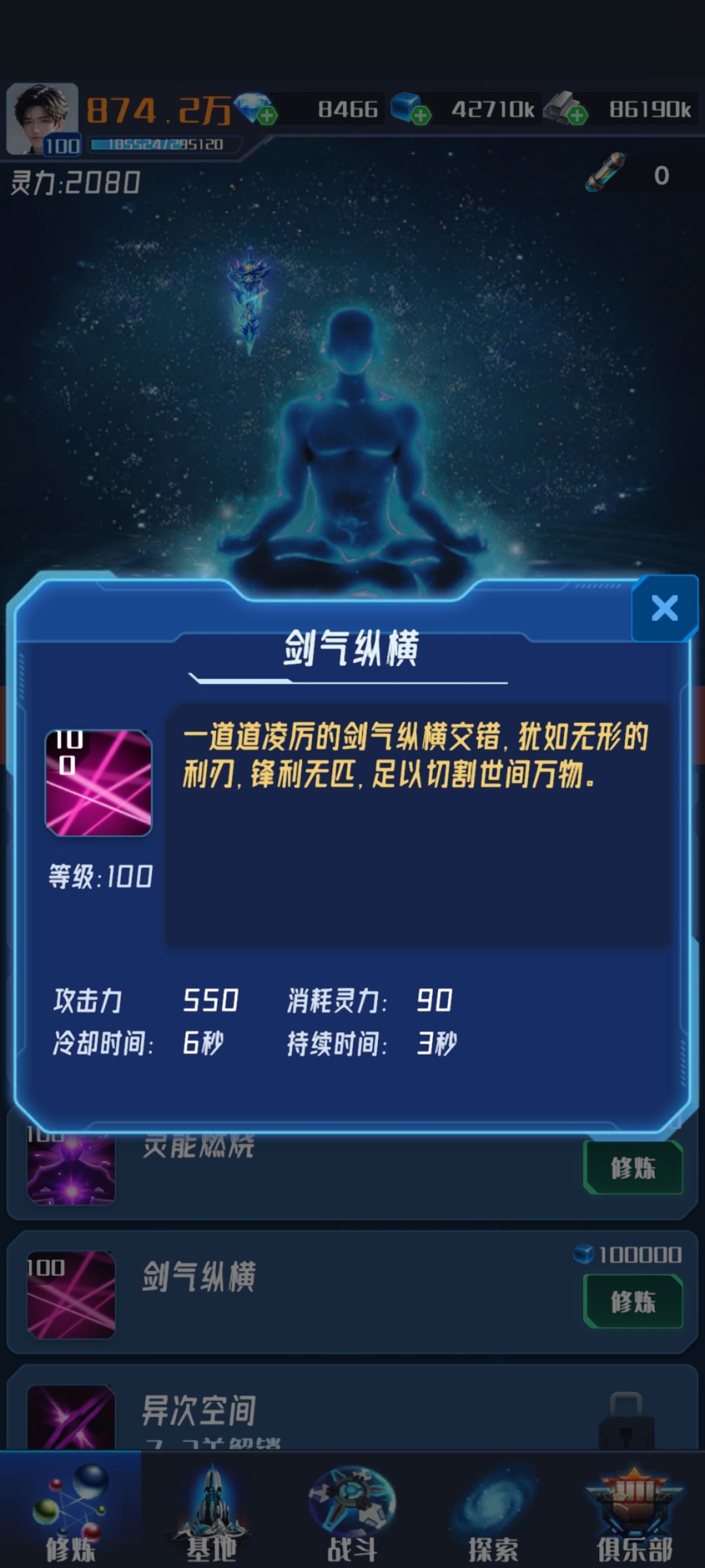 由于灵能的稀缺,前期优先升级剑魔方和灵能燃烧,关卡建议魔方用来清数量 灵能燃烧用来增幅激光清质量 强化选择☞魔方持续>魔方范围>灵能持续>灵能暴击>魔方冷却>灵能攻击>剑气斩数量>剑气纵横范围>剑刃风暴数量>剑气斩穿透 #我在星空修剑气