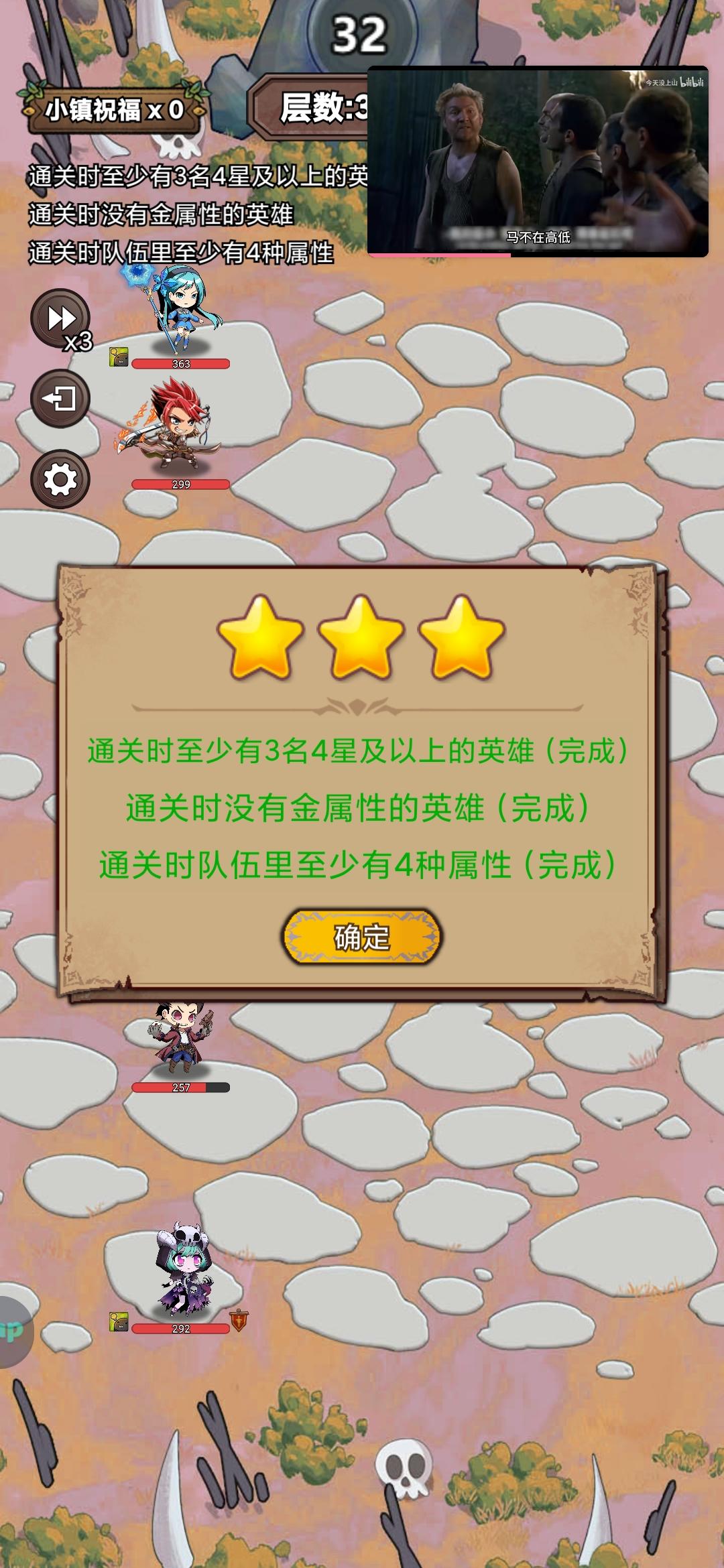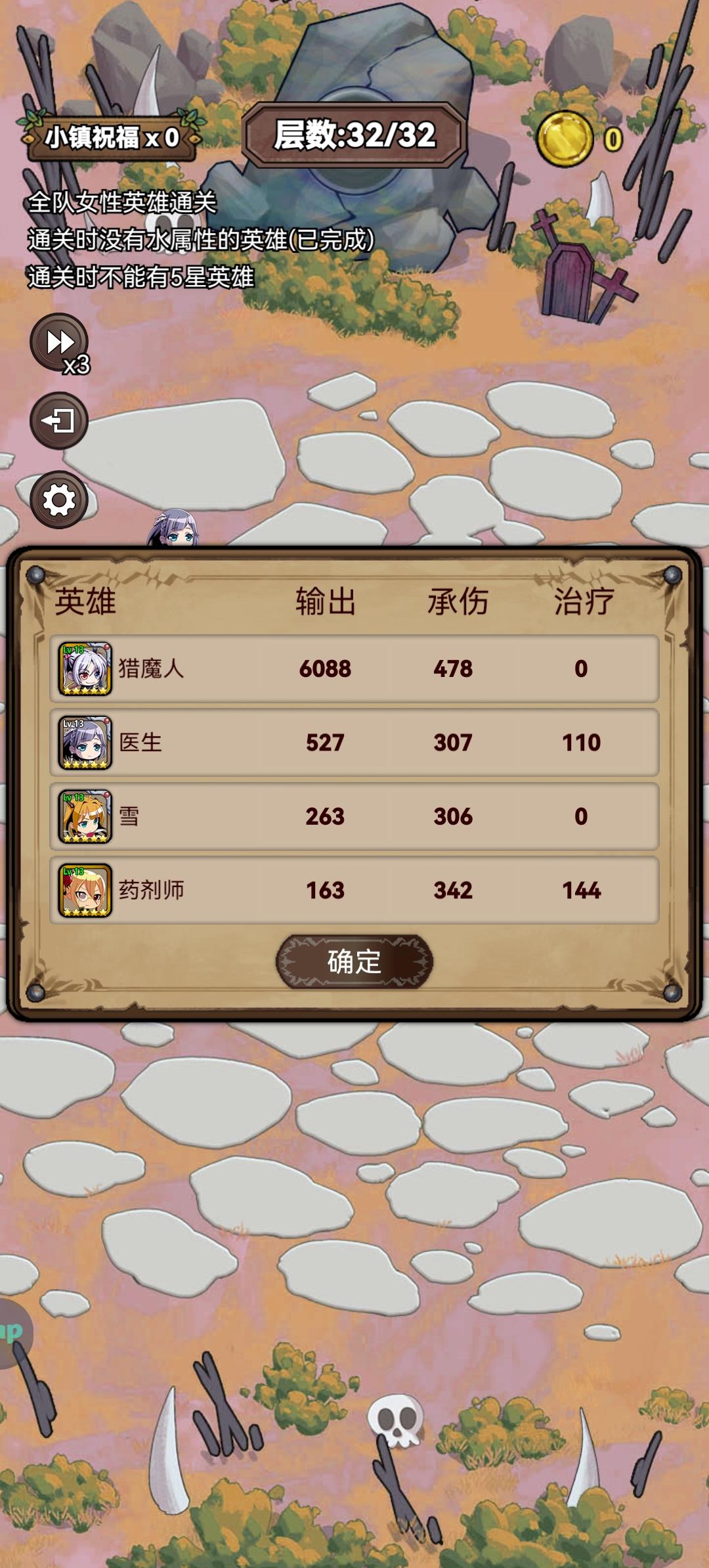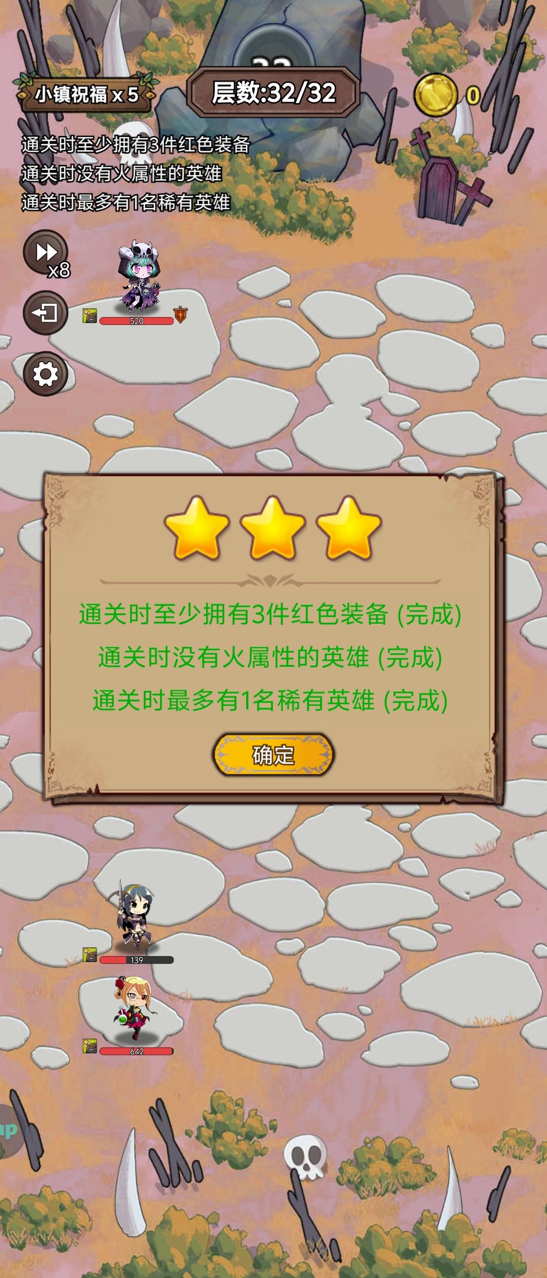 有点难度的王,最麻烦的是凑4属性的单稀有,浪费好多钱去刷英雄,最后实在没办法买了个土骑,装备一般,最主要的还是冰法的5星专武,相信大部分人多打几次还是能过的,新手不要强求一次通关