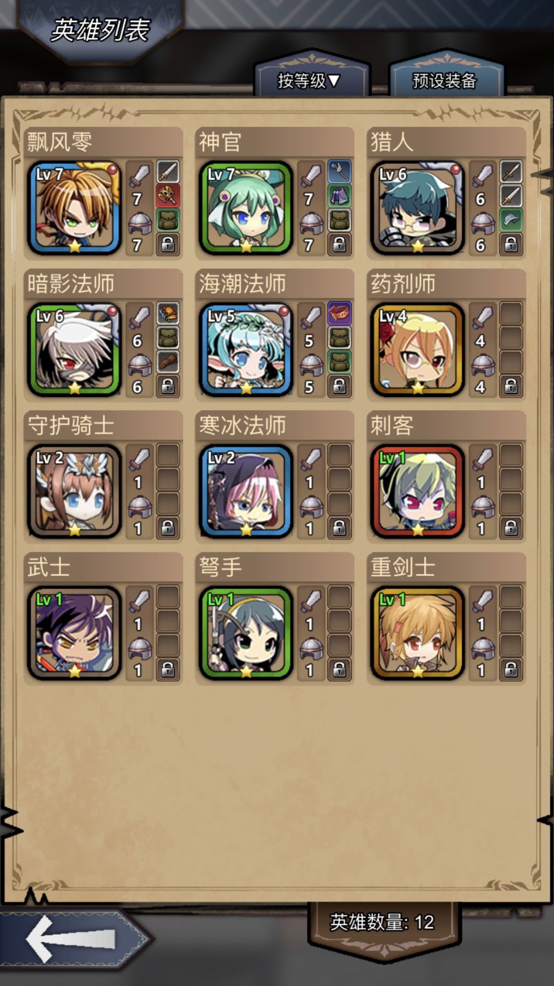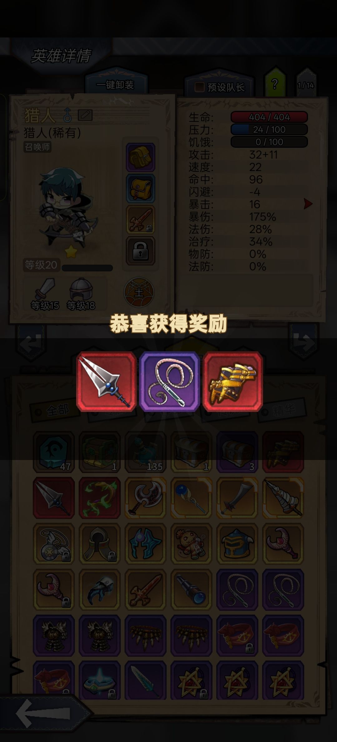 重要的话不用说三遍:在福利分享那里 邀请码填 54f3g 有金箱子可以拿哟!![表情_比心] 欧皇搞红色装备的途径就是开金箱子…… 刷了三次开局,有幸短时间拿到个堪称完美开局的稀有组合▻▻暗影法师+猎人+海潮法师(闪电烈焰法师啥的也行),加上开始选的神官奶妈,前期可以秒天秒地了,后面再搞个坦克圣殿骑士魔骑士啥的,阵容搭配就齐了! (PS:前期推荐法师团推图刷图,尽快整到森林难度5刷蓝箱子,难度7