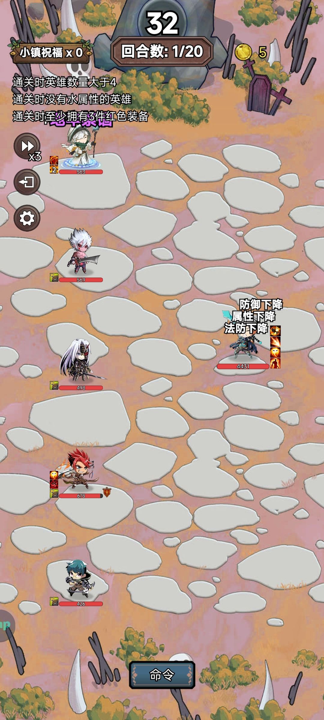 金三角基本可以平推, 我这里第一次没有刷出狂战,用的电法,结果猎魔死了,后补了个三星