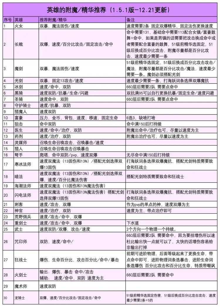 英雄精华附魔推荐表,互助互赞,助力八级
