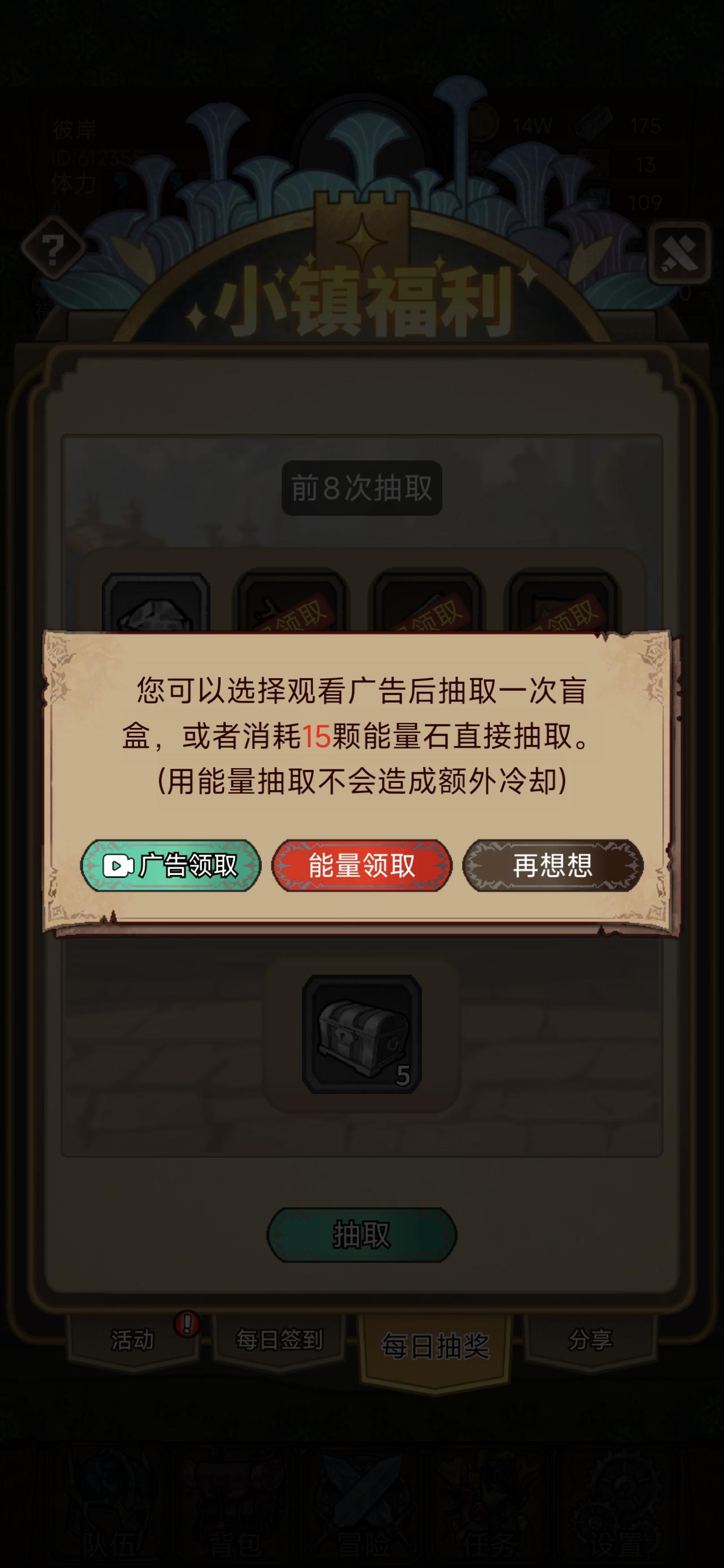 领取日常宝箱看广告 广告时长随机常见45秒 看广告不是连续看 每隔5秒左右不点继续或滑动屏幕 广告暂停 有时广告会自动弹窗无法关闭(类似病毒)