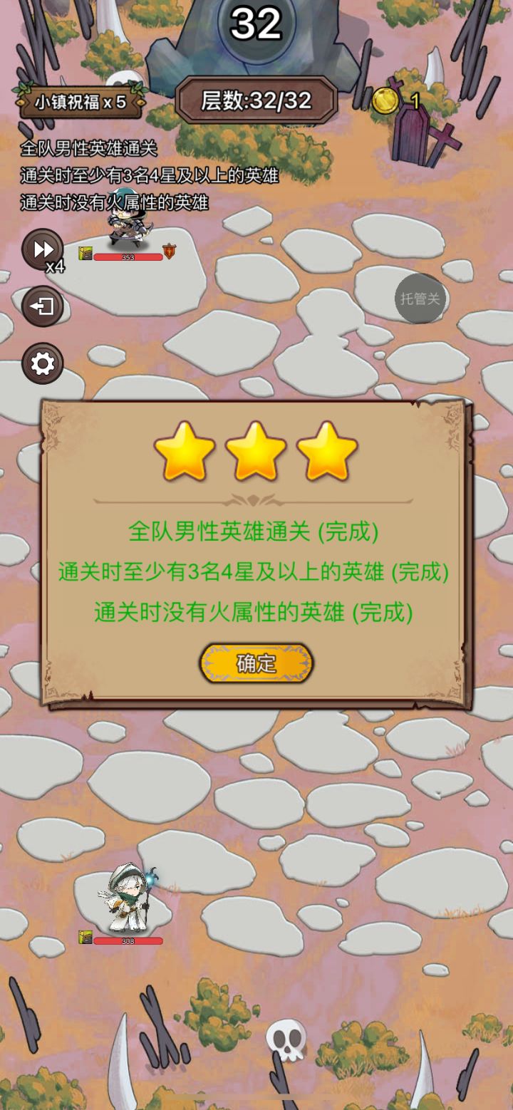 很容易就搞定了,男队嘎嘎乱杀,就是忘记不能有火的条件,最后选了个长戟,不得不重新开始,浪费点时间