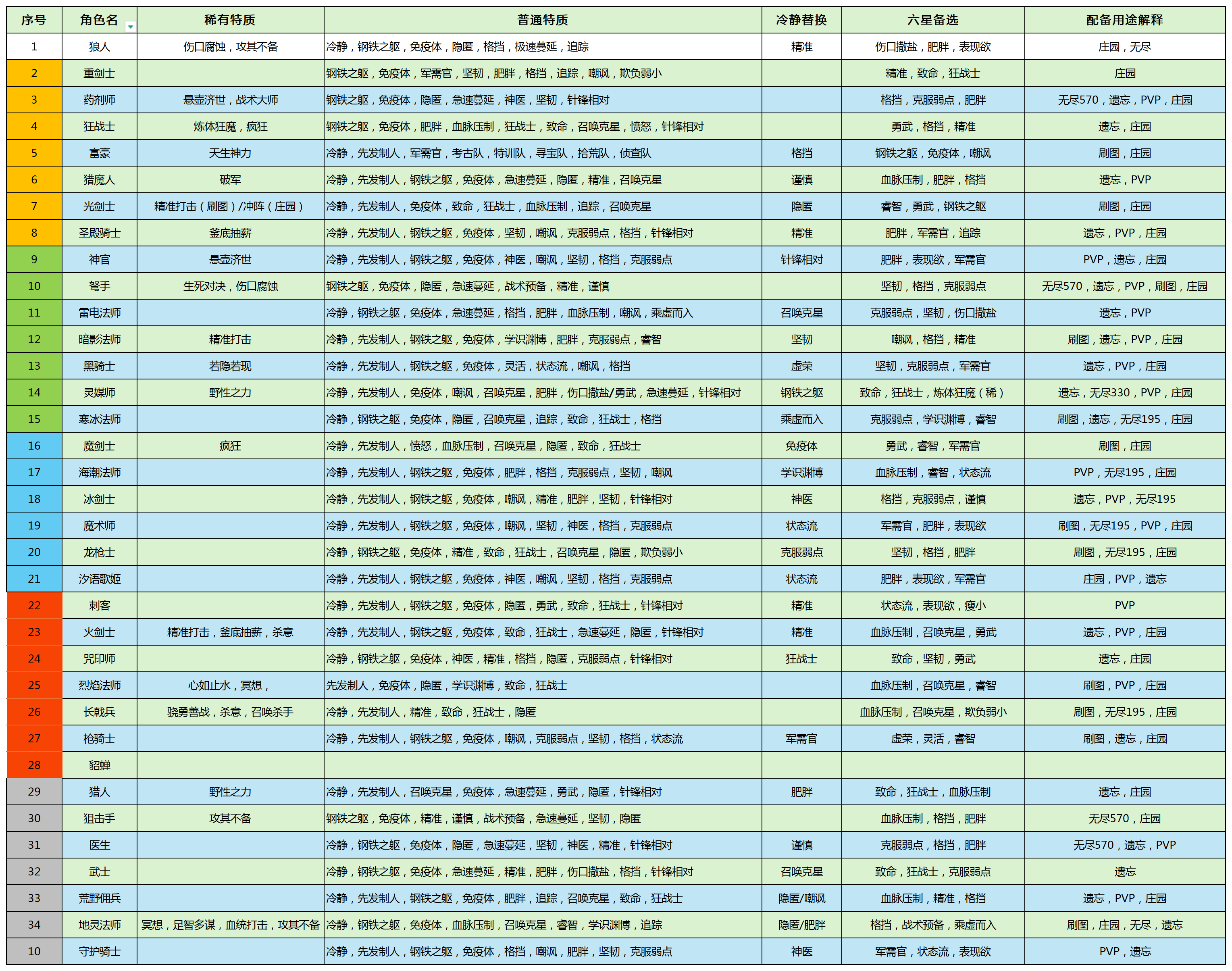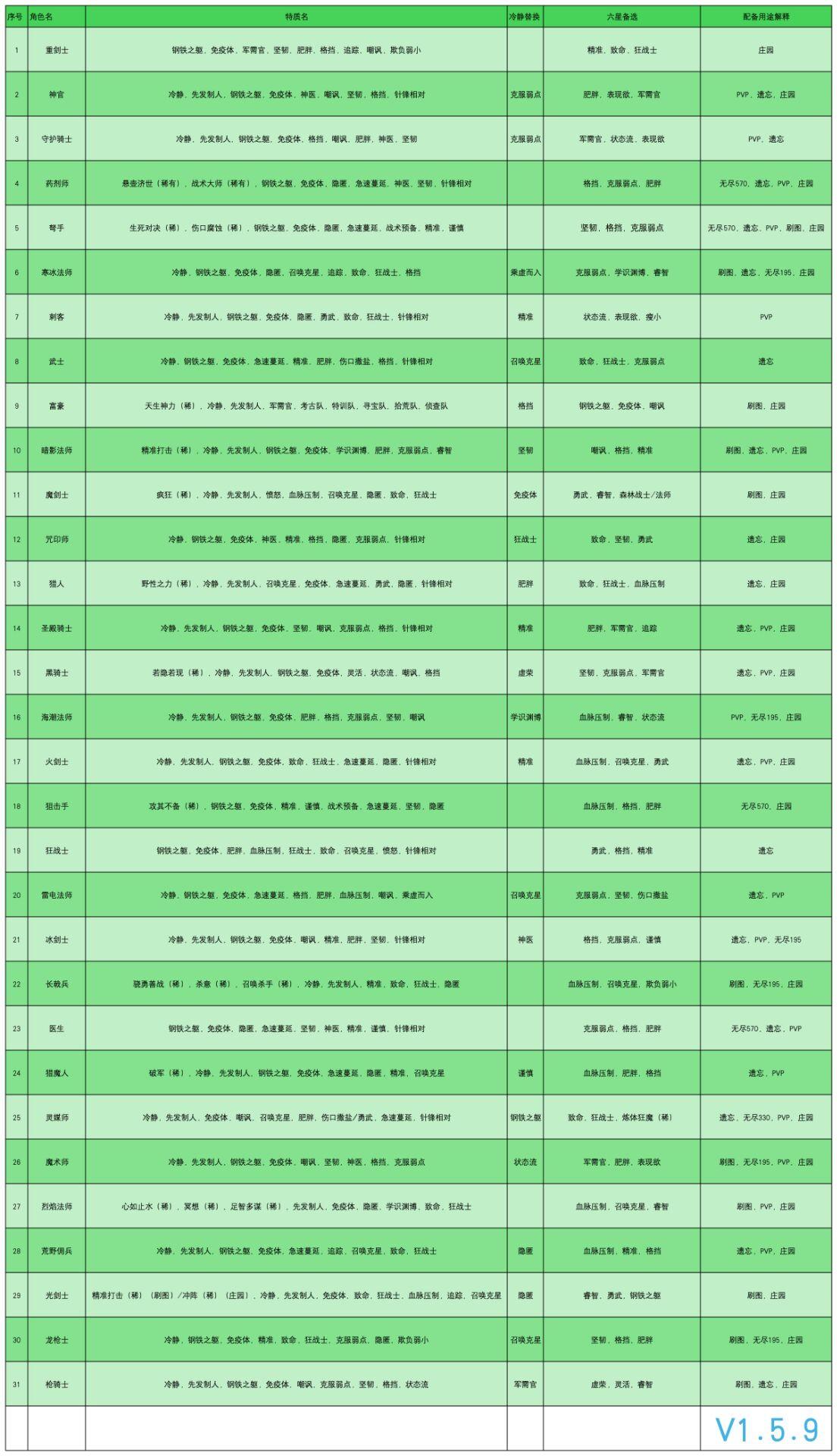 各角色特性推荐以及精华词条