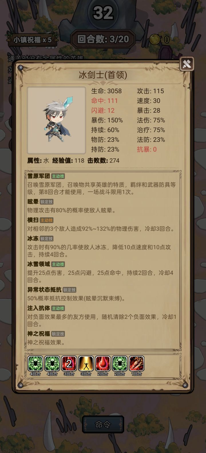3月25号,星期三,遗忘之门困难3攻略 困难3的精英怪14是森林三姐妹20是两个精英怪,黑袍法师 ,26是火剑🗡️ ,boss是冰剑,困难3的困难点1在于20的黑袍会突突突,有可能突死一个英雄,困难点2是只有一个稀有英雄。,困难点3是,输出不够,超8回合会召唤,所以有土法的可以选择土法。我一般看见一个稀有英雄就会选择土法,或者是灵媒,这局我先刷到的灵媒,就直接用了。奶的话,神官就好,还有一