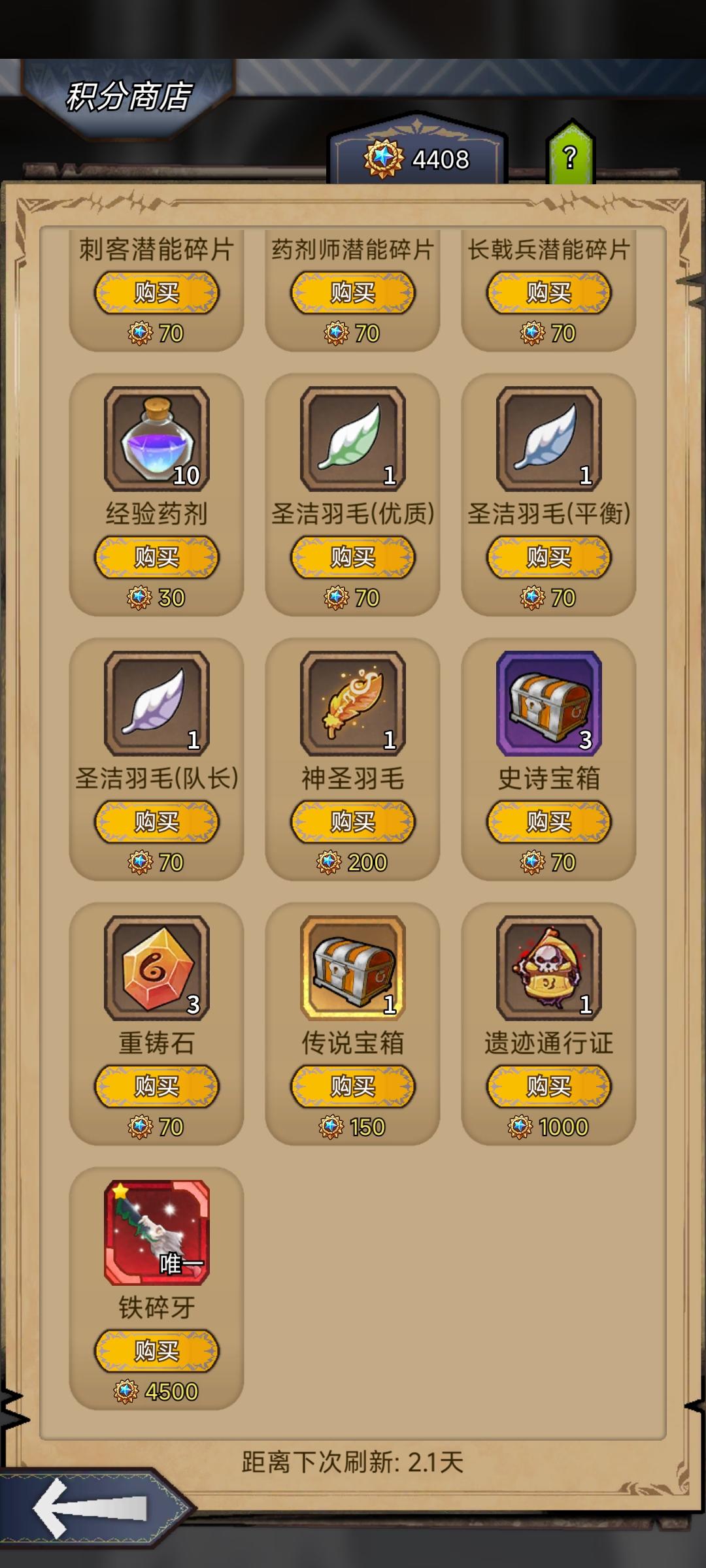 1.基本概念*刷图:进入地图(非boos图)战斗,每场战斗等于一周,小镇核心玩法,森林,雪原,沙漠,普通三地图,是获取蓝箱子的最关键来源。*推图:也称为攻坚,打boss图,打完boss难度自动上升1层,不打boss不会升难度。*遗迹:后期获取羁绊石的地图,可以理解为困难地图,共21层大关,每层3小关,遗迹券重置后可获取羁绊石。(建议全部打通再重置,因为羁绊石只有在打通的关卡内获取)*难X: