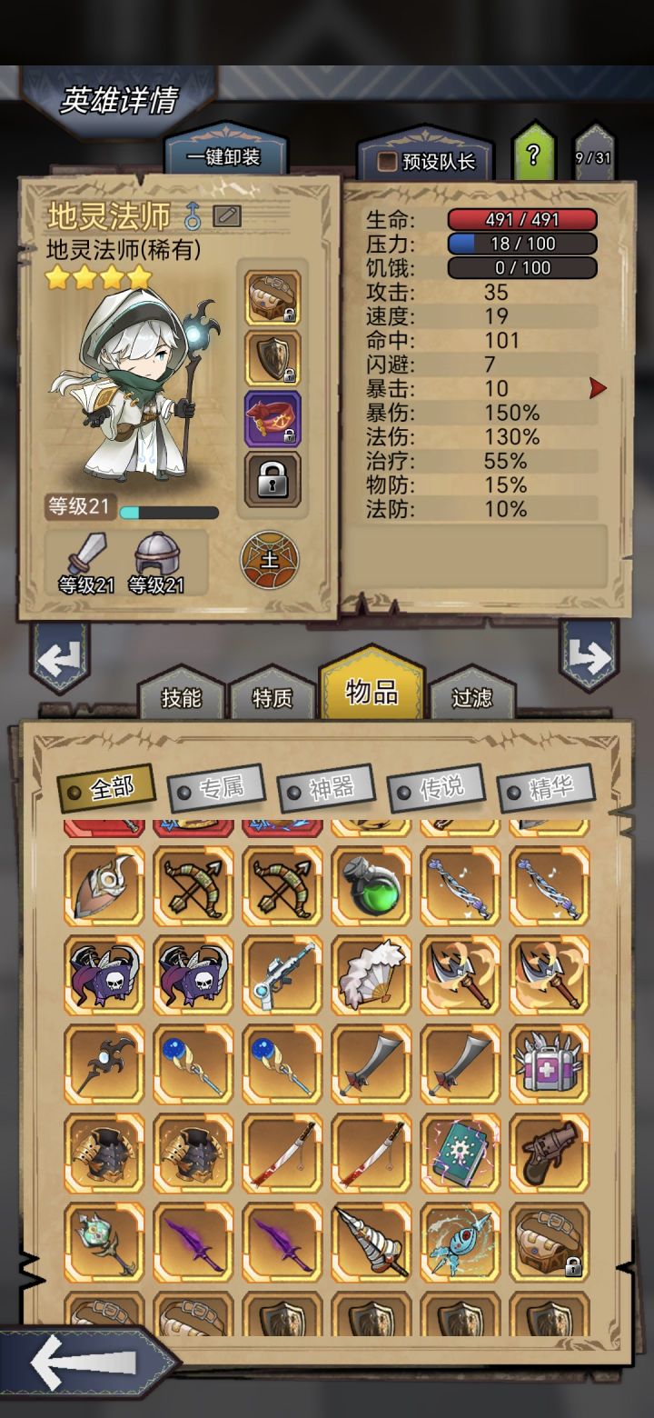 小萌新刚玩,火女开局,100周解锁灵媒,700周解锁了土法!向着5+5努力!(就差两把主武器了,狗粮都准备好了)