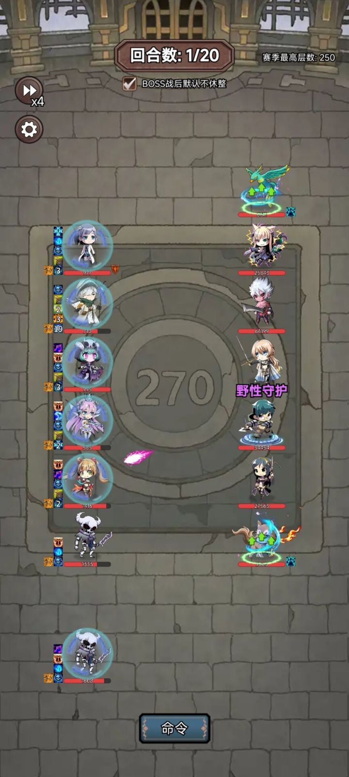 上个月开始玩的,今天终于通关了,1333周,纪念一下!地牢20不停试,刷了30多体力终于把赏金猎人沉默到死了!塔刷到270就过不去了,得按照攻略来配了。后面就是日复一日地刷资源和羁绊了