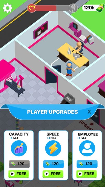 Hire employees , upgrade them and earn fast.