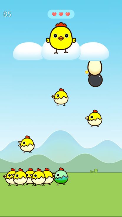 快乐小鸡茉莉在云朵上,云朵上往下落鸡蛋,鸡蛋越落越快,掉到地上就摔碎了,多么可怜呀!但是你可以拯救这些鸡蛋哦,你只需要在它们落地前点击它们,它们就会立马孵化出小鸡来,小鸡落到地上就会叽叽喳喳的跑掉啦!是不是很快乐呢?