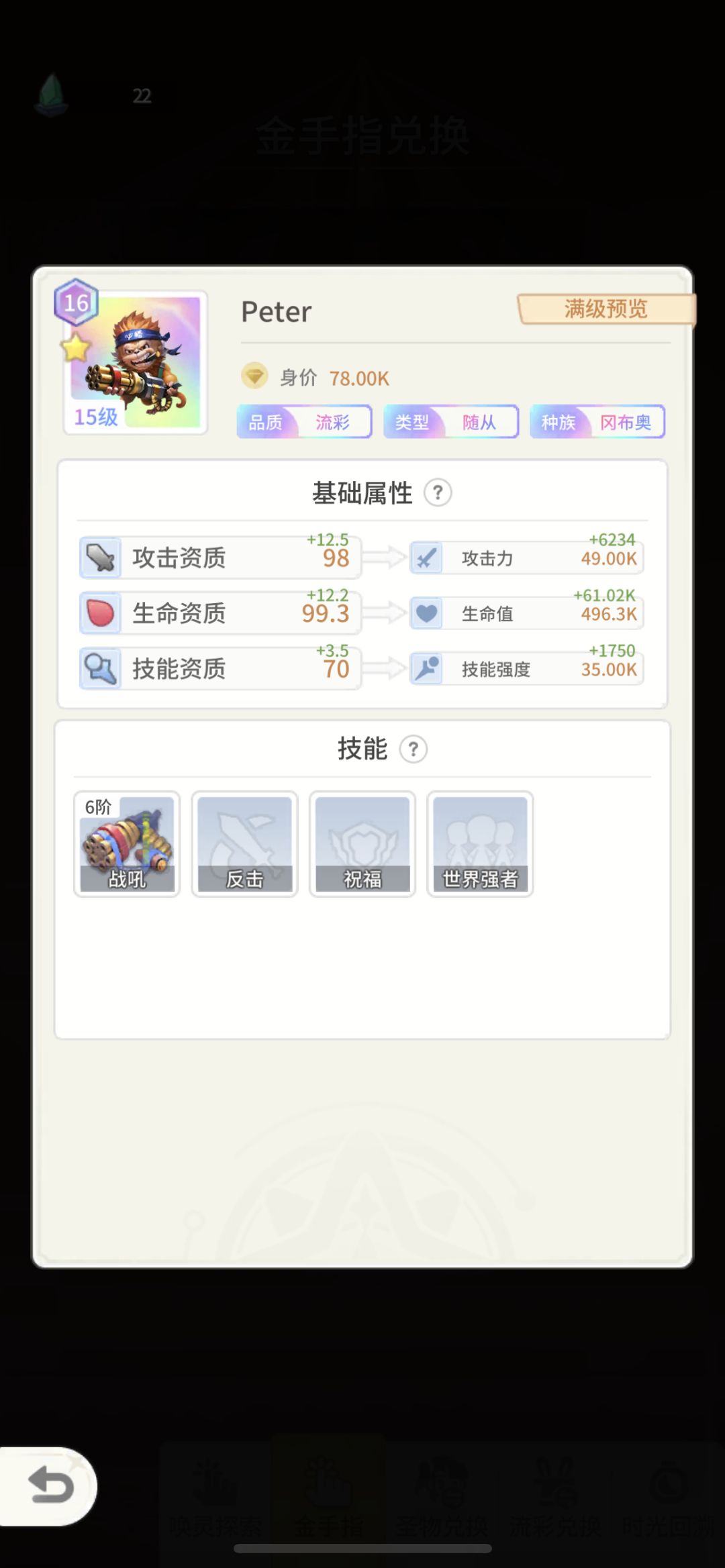 哈咯啊大家,又是我,大名鼎鼎的1区豹子头-昔年。这次给大家带来的是冈布奥的三张彩卡解析。 图1,Peter,相信玩过不思议迷宫的小伙伴对他都不会陌生吧,技能效果是随机运行一个惊喜程序(1.在场后随机召唤一定数量的充气猴宝宝,属性极低,甚至不如炎魔召唤出来的小弟。2.回复我方世界之子一定的生命值,依旧十分鸡肋,无事发生。3.对敌方世界之子造成一定伤害,伤害确实很客观,可是四分之一的概率比较看脸,