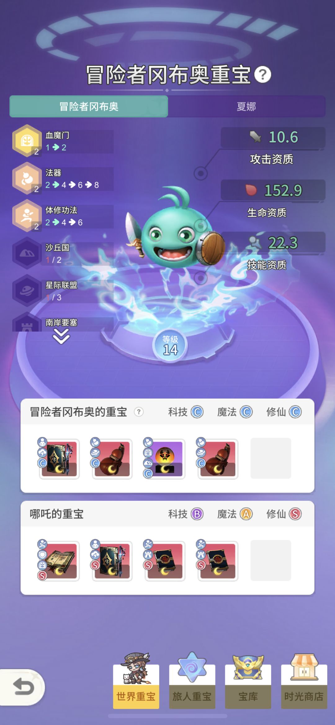 哈咯啊大家,又是我,大名鼎鼎的1区豹子头-昔年。今天给大家带来的是冈布奥常用的重宝讲解以及冈布奥常用的原初试炼阵容。 首先先来看看我个人常用的冈布奥重宝,如图1,依旧还是血魔门和体修功法的搭配(体修功法一般开出羁绊即可,不必过分追求6体修,那点伤害不是很够看,不如去换成其他好用的重宝),2血魔门的羁绊等于自带两本地藏镇狱功-残,不管是打什么阵容都非常好用。多余的格子就可以带紫金葫芦-仿、建木(